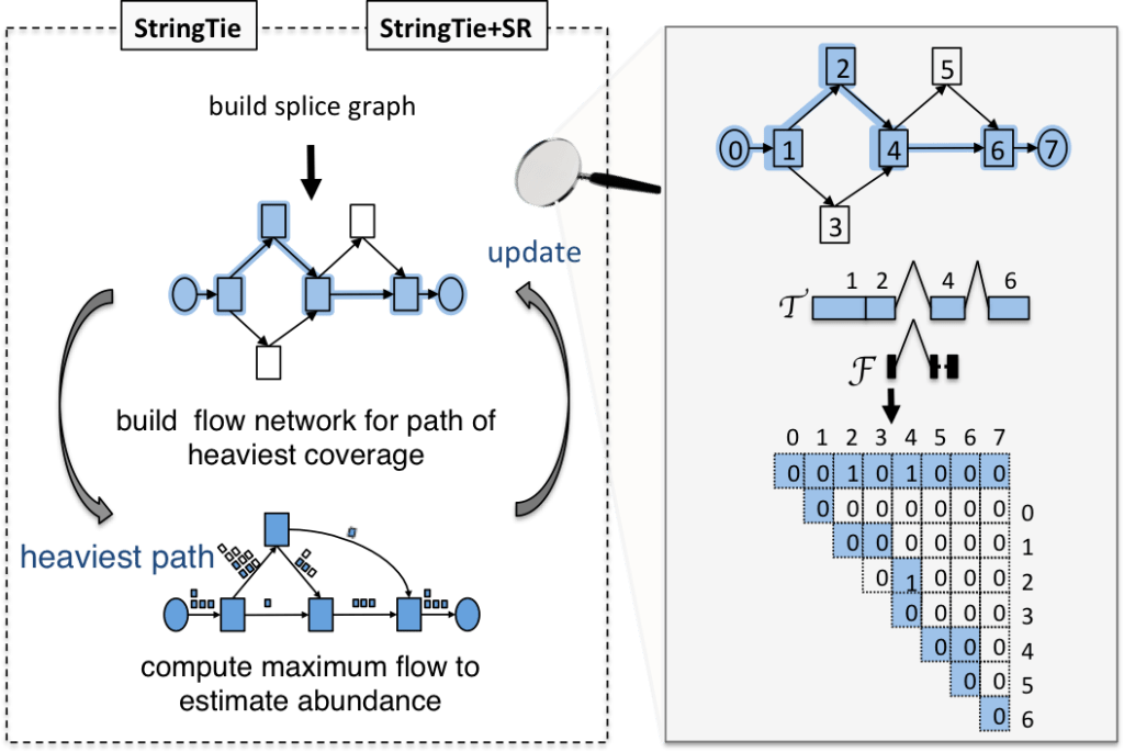 StringTie is a fast and highly efficient assembler of RNA-Seq alignments into potential transcripts. It uses a novel network flow algorithm as well as an optional de novo assembly step to assemble and quantitate full-length transcripts representing multiple splice variants for each gene locus. Its input can include alignments of either short or long RNA-seq reads or a combination of both.